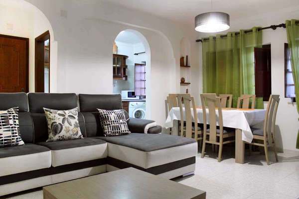 2 quartos, um dos quais com roupeiro, 1 casa de banho, sala de estar e jantar, cozinha equipada, 2 despensas, 2ºroupeiro em zona comum, 1 arrecadação, quintal com telheiro e barbecue e acesso fechado e exclusivo para 2 automóveis.