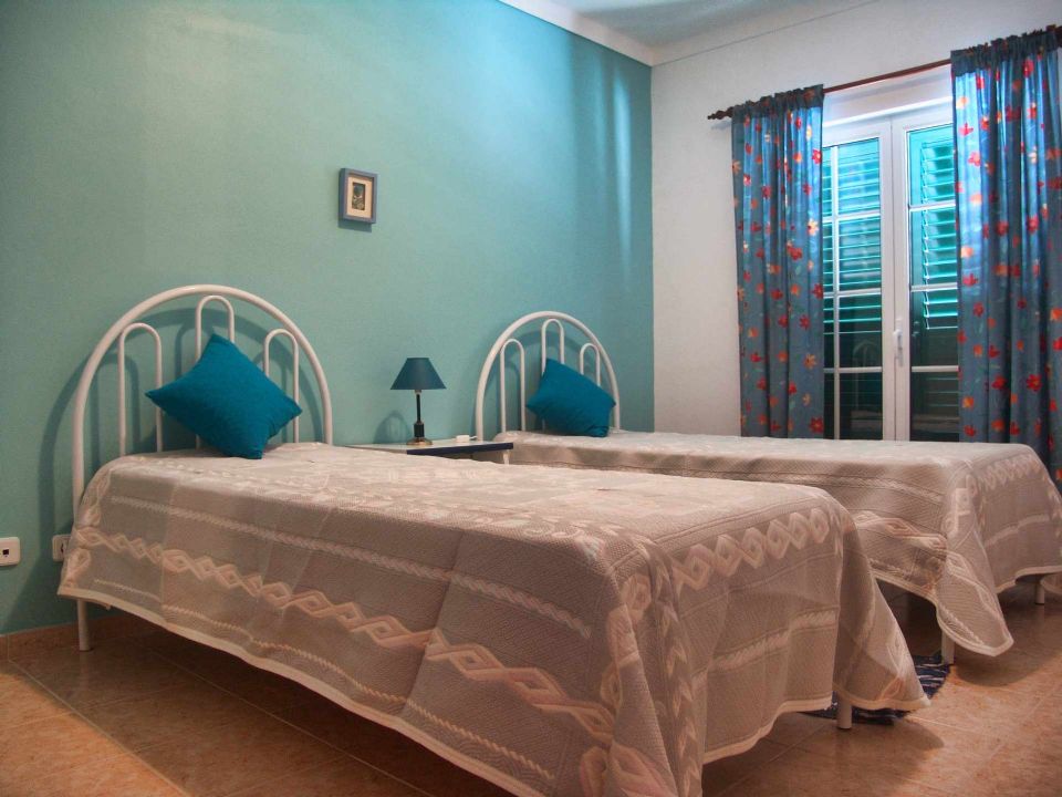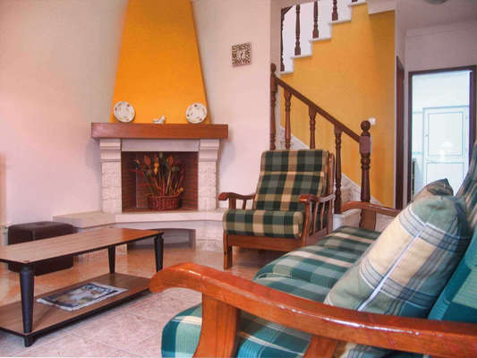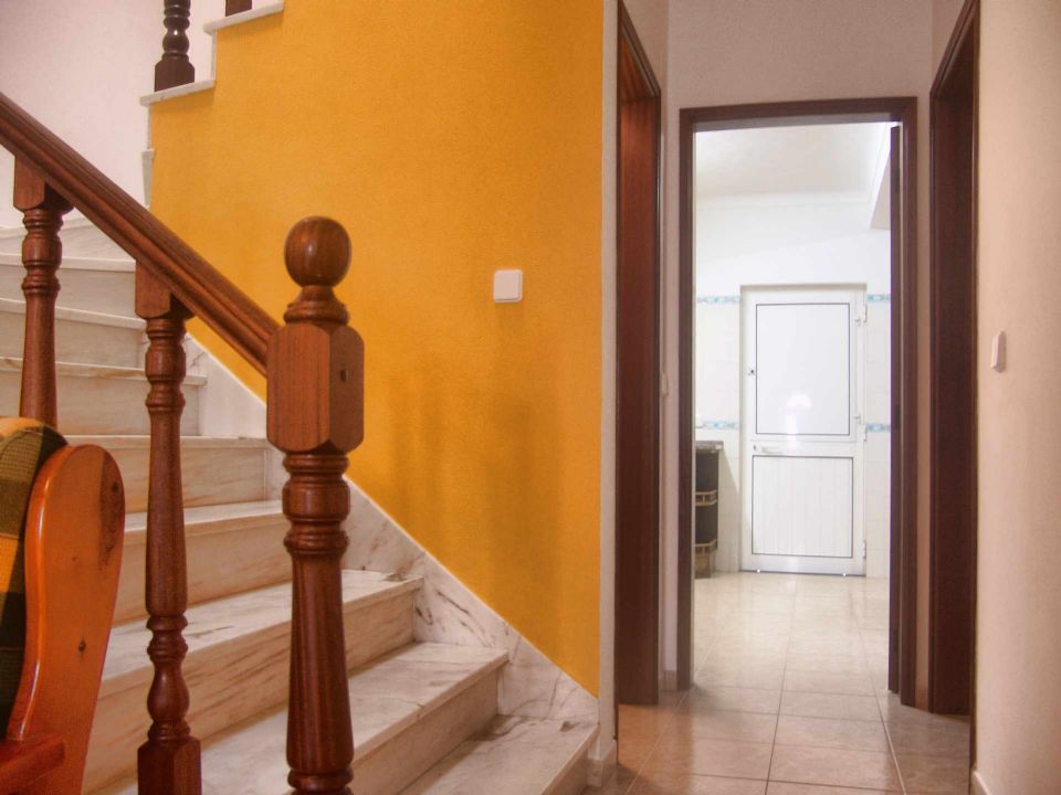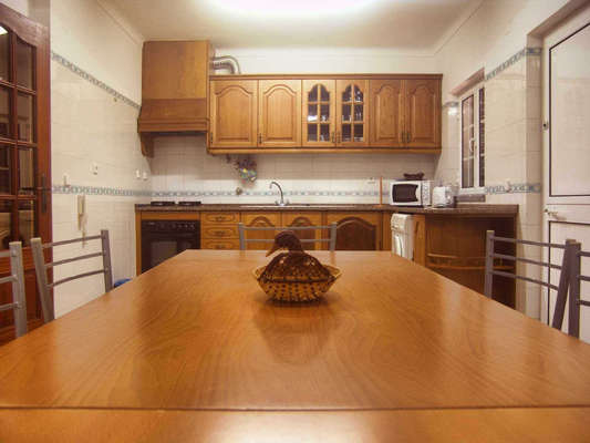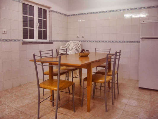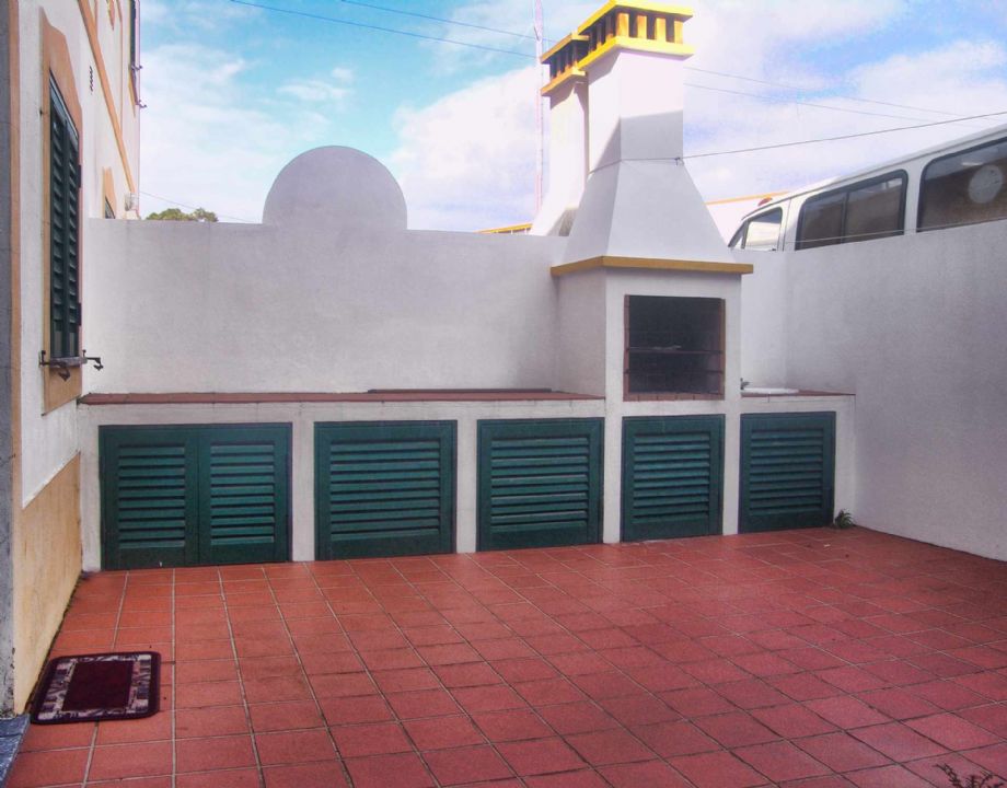 Moradia T3 com quintal composta Sala ( 18 m2 ), cozinha equipada com: máquina de lavar roupa, frigorifico, placa, forno eléctrico, 1 casa de banho e quintal com barbecue. No 1º Andar existem 2 quartos com cama de casal, 1 quarto com 2 camas individuais, 2 varandas e 1 casa de banho.