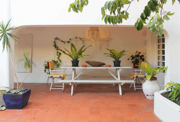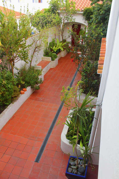 Espaço exterior com jardim e várias áreas de refeição-lazer ao nivel do r/c e do 1ºandar.
