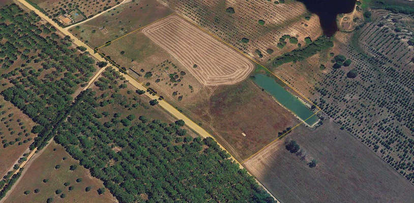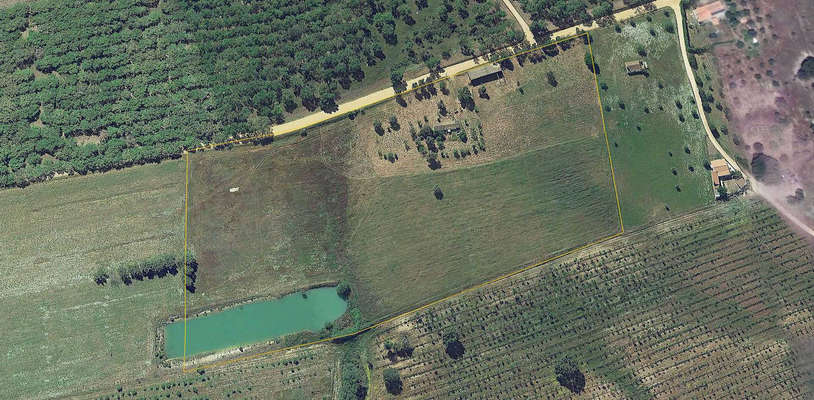 Terreno plano ideal para agricultura existindo ainda telheiro para material agricola, palha, madeira, etc. e uma charca para rega.