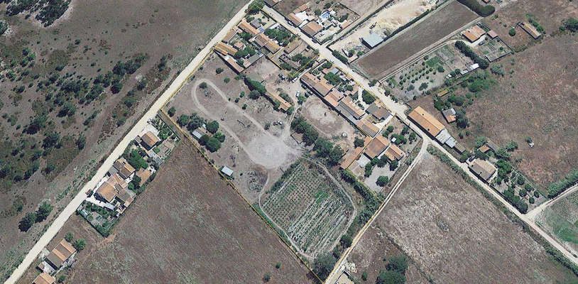 Terreno com 18000m2 (1,8Ha) com 2 ruina para habitação com 50 e 46m2. Para além destas construções, estão implantadas, no terreno, 10 moradias com os respectivos talhões, ao longo de uma das extremas da propriedade, todas de benfeitoria, pertencentes a terceiros em que o comprador terá direito de opção em qualquer futura venda. Benfeitorias com contrato de arrendamento em vigor e sem possibilidade de usucapião.